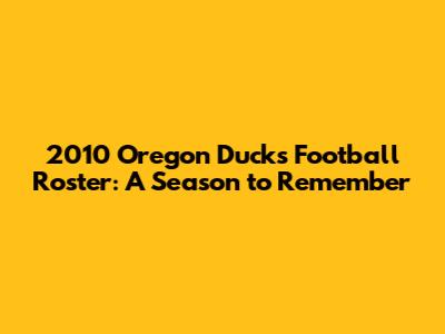 Let's relive some of the unforgettable moments from the 2010 season. The Ducks had a thrilling regular season, going undefeated and dominating their opponents with style. The team was constantly setting records. They steamrolled opponents with their innovative offense. They were on the national stage, and their games were must-see TV. Their journey to the championship game was filled with excitement and drama. The team consistently delivered amazing performances. They showed a lot of class and determination. The Ducks met some formidable rivals. Every game was a test of their skills, but they always played with grit. The team played with heart. There was an exceptional level of teamwork and skill. The season was not without its challenges. There were hard-fought victories and narrow escapes. The Ducks always found a way to win. The fans cheered and supported the team. They were the key to the Ducks' successes. The atmosphere at Autzen Stadium was electric, and the fans created a home-field advantage. The team responded to every challenge. They showed the power of perseverance. The Ducks went on to play in the BCS National Championship Game against Auburn, a game that went down to the wire. Although they ultimately fell short, the team earned the respect of the entire nation. It was an amazing season that is still treasured by fans. The team's performance left a lasting impression on college football history. The impact of the 2010 Ducks continues to resonate with fans, reminding them of the joy and excitement of the sport.
