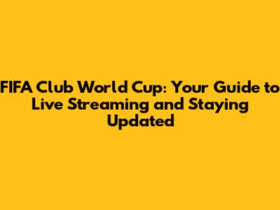 FIFA Club World Cup: Watch Live Streams & Stay Updated
