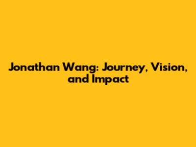 Jonathan Wang: Journey, Vision, And Impact