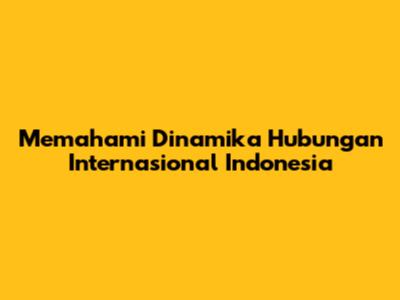 Memahami Dinamika Hubungan Internasional Indonesia