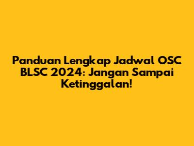 Panduan Lengkap Jadwal OSC BLSC 2024: Jangan Sampai Ketinggalan!