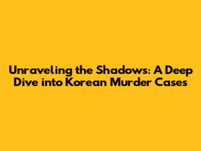 Unraveling The Shadows: A Deep Dive Into Korean Murder Cases