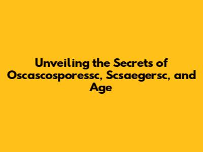 Unveiling The Secrets Of Oscascosporessc, Scsaegersc, And Age