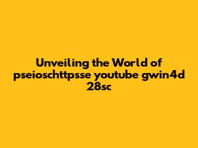 Unveiling The World Of Pseioschttpsse Youtube Gwin4d 28sc